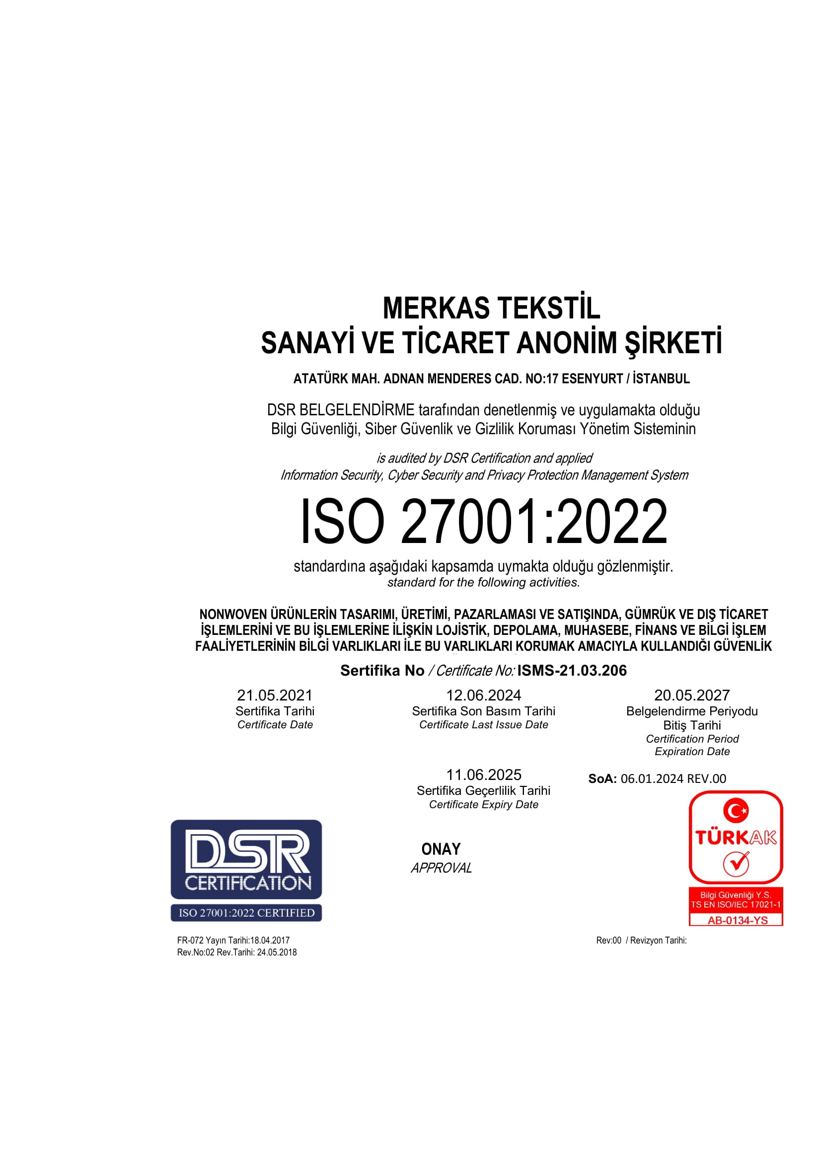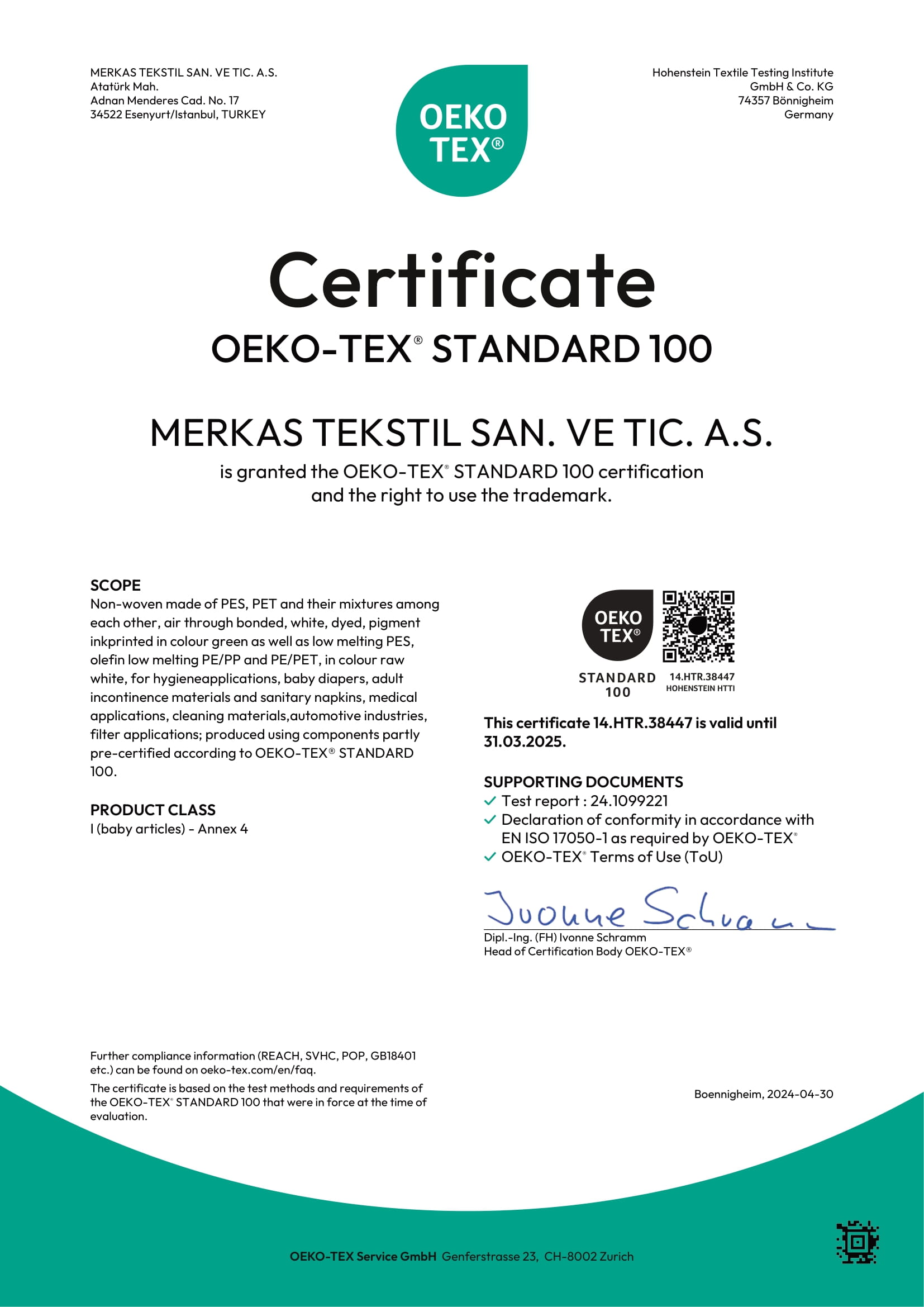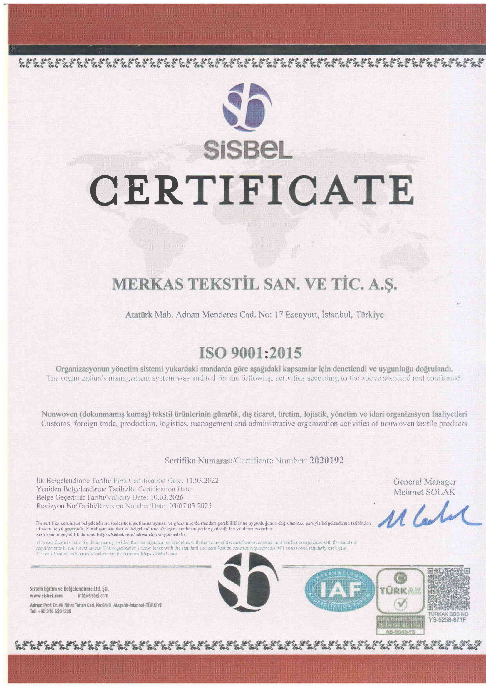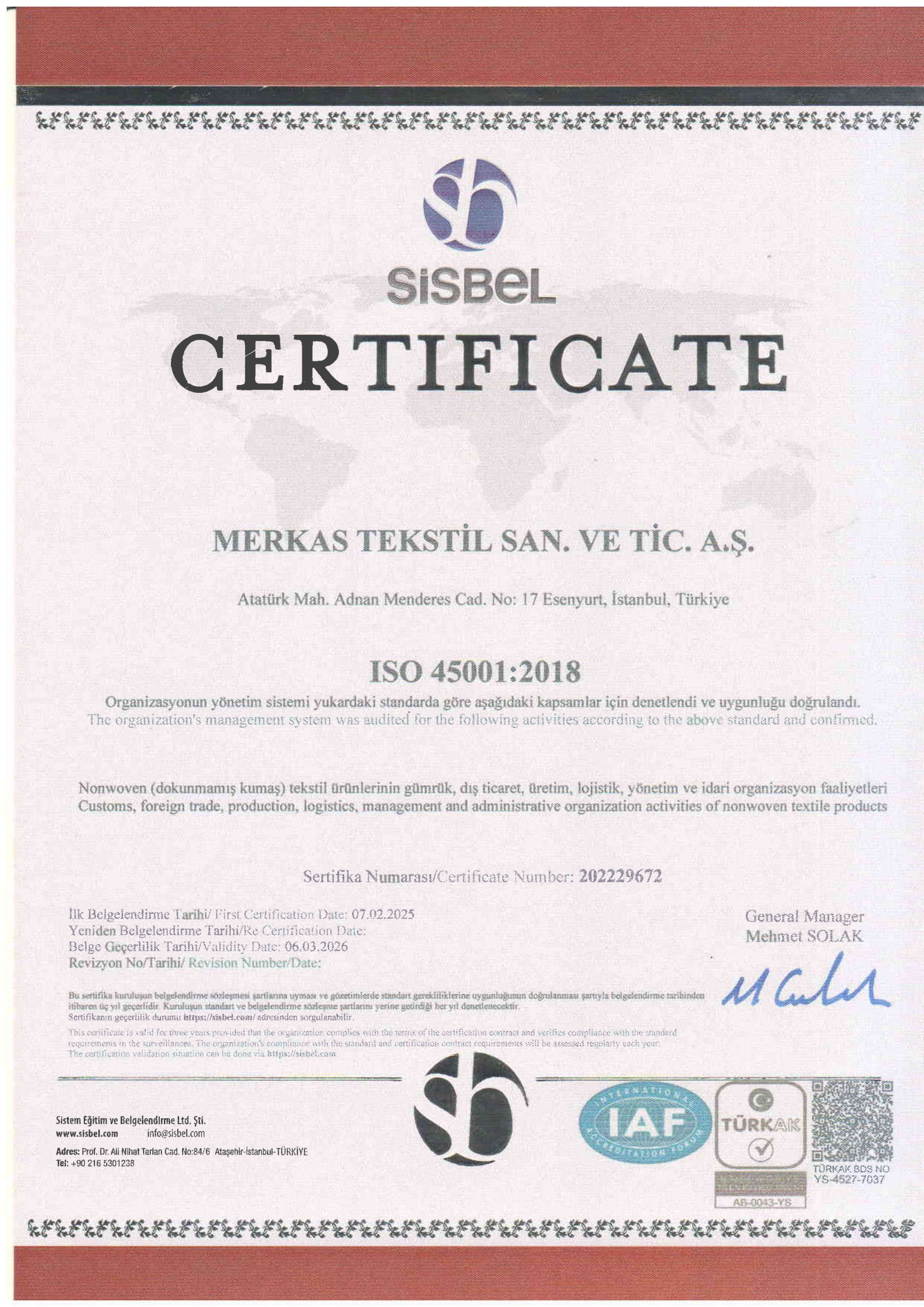 Hassan group’un 1939’dan günümüze gelen nonwoven üretim geleneğine 2011 yılında dahil olan Merkas Tekstil Sanayi ve Ticaret A.Ş. başta hijyen sektörü olmak üzere medikal, konfeksyon ve filtre gibi çeşitli sektörlerin nonwoven ihtiyacını karşılamak üzere kurulmuştur.